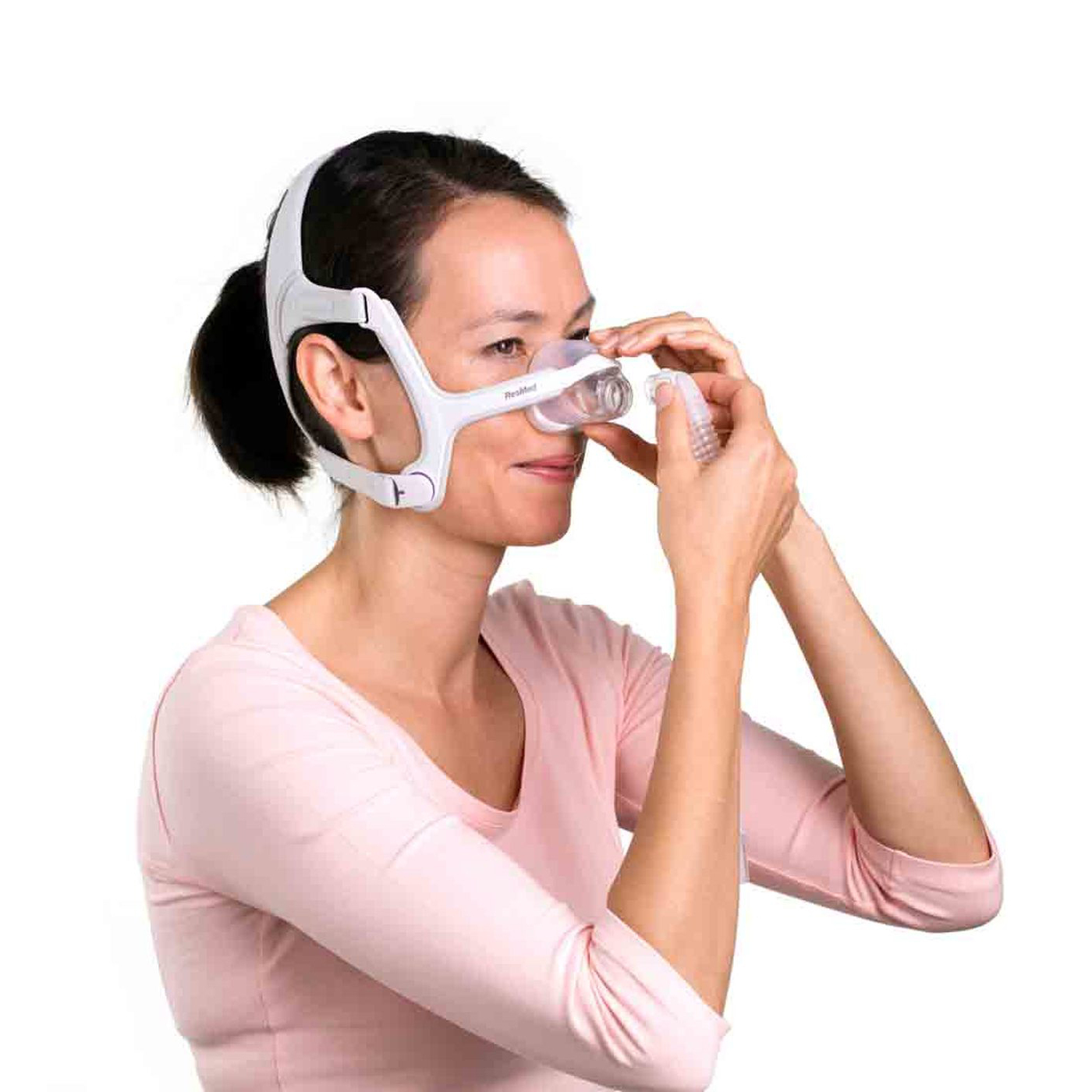 Mascarilla nasal para ajustarse a las mujeres, elegante tono lavanda y un rango de tamaño más pequeño