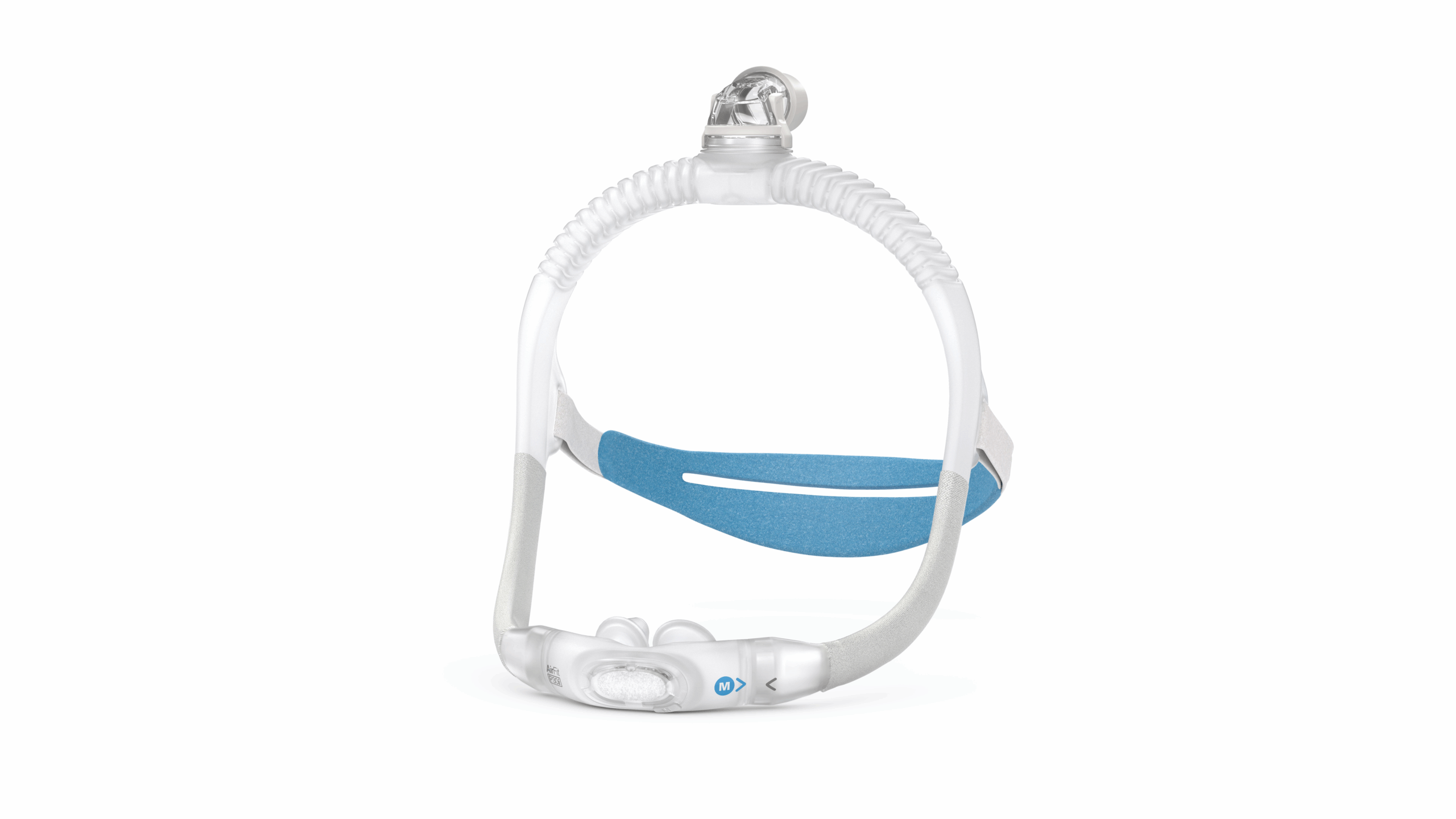 La AirFit P30i una mascarilla nasal tipo pillow, diseñada para mantener el tubo del sistema fuera del campo de visión
